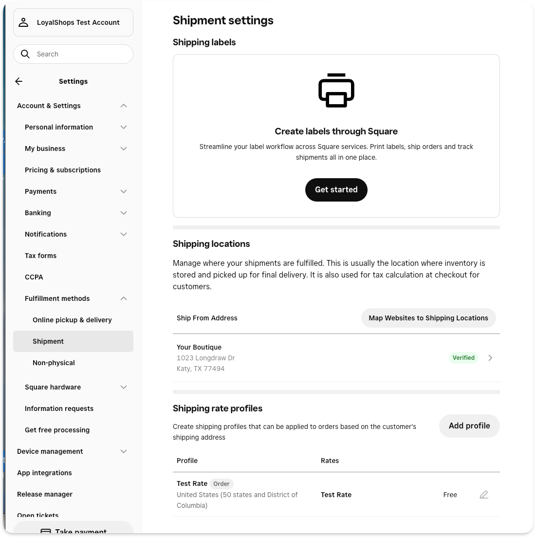 To review and potentially review these Shipping Rates causing this issue, use a computer, log into Square, then use this URL to go to Shipment Settings: